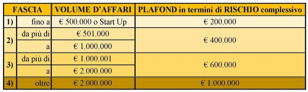 Considerata la specifica operatività di tali aziende, si individuano i seguenti plafond di garanzia concedibile: